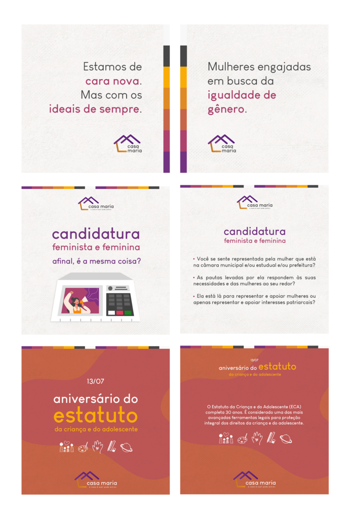 Artes para mídias sociais desenvolvidas para a Casa Maria (2019)