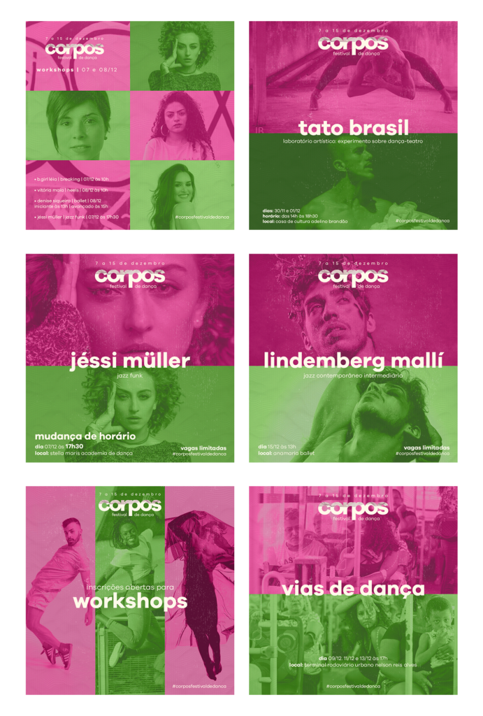 Artes para mídias sociais desenvolvidas para o Festival de Dança Corpos (2019)