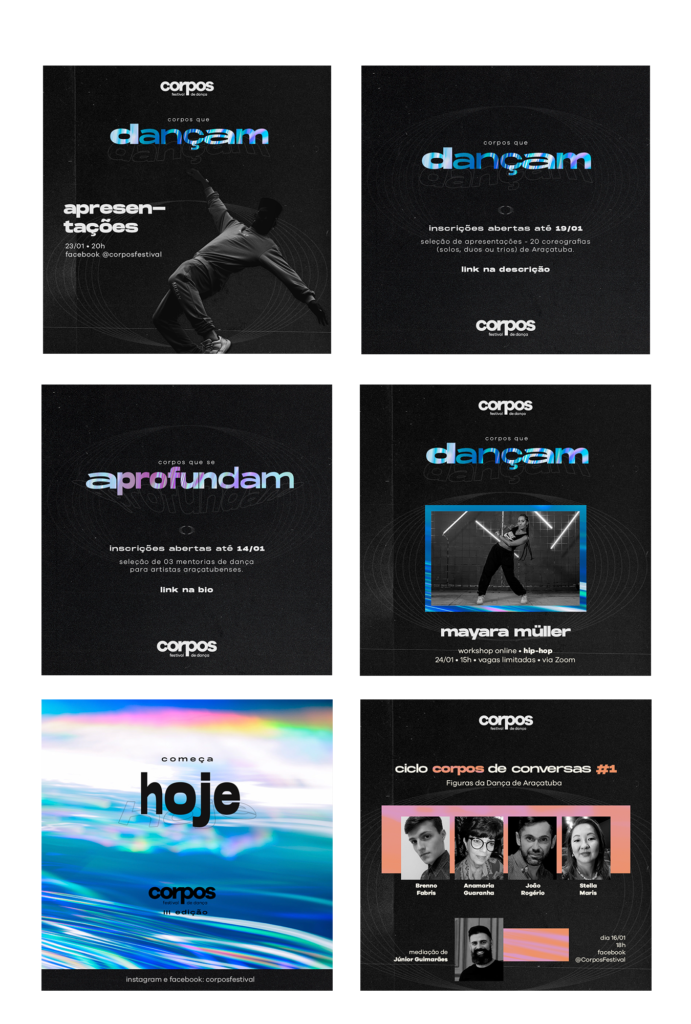 Artes para mídias sociais desenvolvidas para o Festival de Dança Corpos (2023)