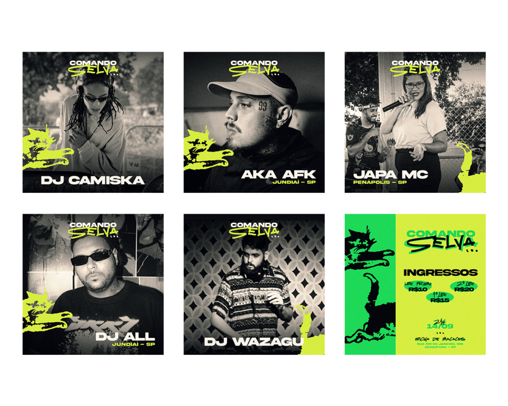 Artes para mídias sociais desenvolvidas para a festa Comando Selva