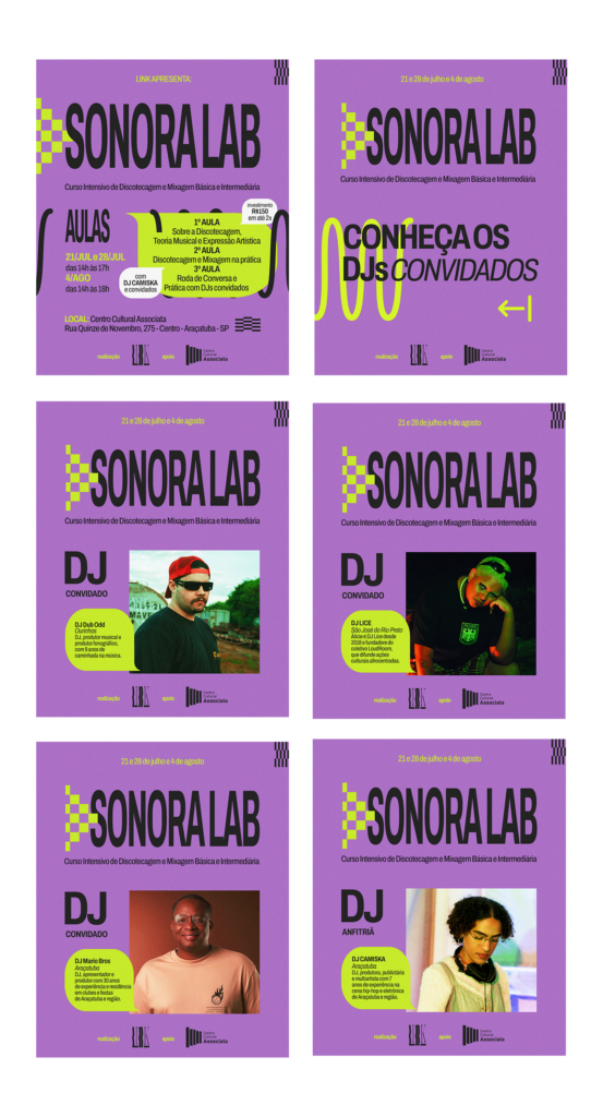 Artes para mídias sociais desenvolvidas para o curso Sonora Lab (2024)