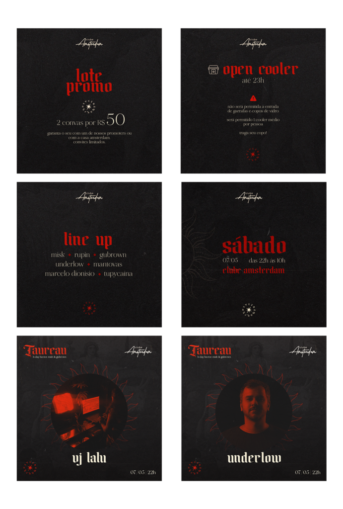 Artes para mídias sociais desenvolvidas para a festa Taureau (2022)
