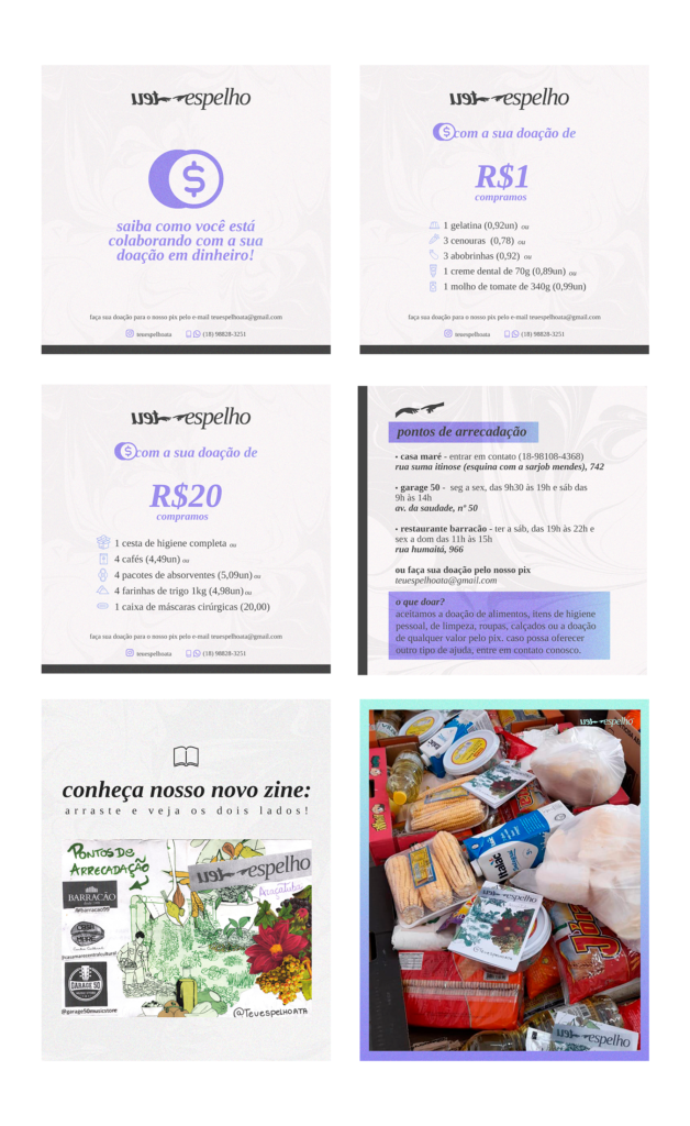 Artes para mídias sociais desenvolvidas para o projeto Teu Espelho (2020)